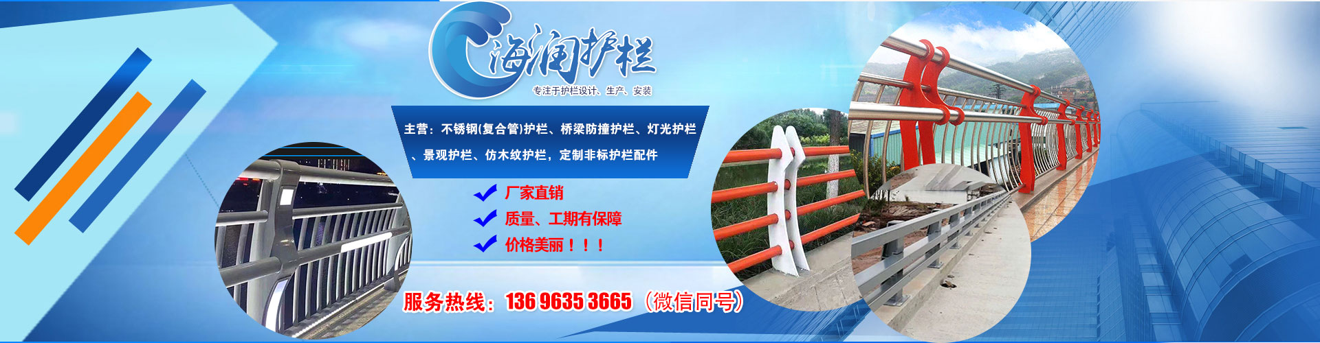 山東海潤金屬制造有限公司,位于山東?聊城,地理位置優(yōu)越,交通便利。主營:碳鋼防撞護欄 ,鍍鋅管防撞護欄 ,方管防撞護欄 ,鋼板護欄立柱, 木紋轉(zhuǎn)印欄桿,不銹鋼復合管,復合管橋梁護欄,景觀護欄,復合管防撞護欄管。本公司具有一整套完善的運營模式。常年專業(yè)從事生產(chǎn)、銷售各種不銹鋼復合管橋梁護欄、不銹鋼復合管道路欄桿、Q235道路防撞護欄、不銹鋼復合管、304不銹鋼復合管護欄、201不銹鋼復合管護欄、護欄立柱、等新型金屬材料;另設(shè)金屬護欄工程制作安裝公司,公司擁有完整的不銹鋼及不銹鋼復合管生產(chǎn)線24條,以及各類金屬加工設(shè)備多套(數(shù)控等離子切割機、沖床、冼床等),公司還擁有獨立的鍍鋅和噴塑車間,良好地處理好鋼板表面效果。我公司生產(chǎn)的不銹鋼碳素鋼復合管、不銹鋼碳素鋼復合管護欄產(chǎn)品具有外表美觀、防銹耐腐蝕性好、易安裝等性能,不銹鋼復合管廣泛應用于橋梁/河道、市政建設(shè)、景觀護欄、城市護欄、道路護欄、人行扶手、路燈燈桿、高架路橋、立交橋、高速公路等地方,所生產(chǎn)不銹鋼復合管產(chǎn)品全部按照不銹鋼復合管標準生產(chǎn),質(zhì)量可靠公司將繼續(xù)秉持追求卓越,永續(xù)經(jīng)營的經(jīng)營理念,立足市場,挑戰(zhàn)自我,服務(wù)客戶!公司宗旨:至上的品